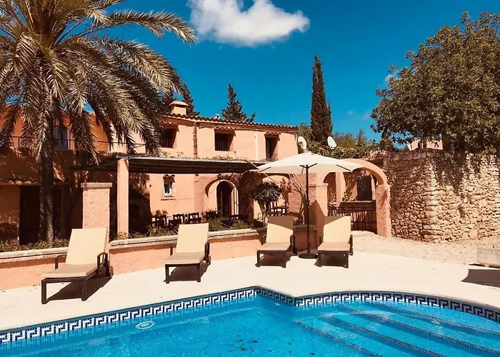 Deze 8-kamer Finca Can Jordi Felanitx villa ligt op 3 km afstand van Mercat Municipal de Felanitx en beschikt over een zwembad op een gemeenschappelijke lounge voor een aangenaam verblijf.